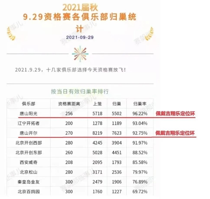2021 Tangshan Kail Pigeon club cooperated with Shenzhen Shenghuang Technology Corp and used Jixiangle skyleader GPS rings in the 2021 Autumn Qualifying Competition in order to make the game fair and open. All participants wore the Jixiangle Skyleader GPS rings to record their flight tracks.