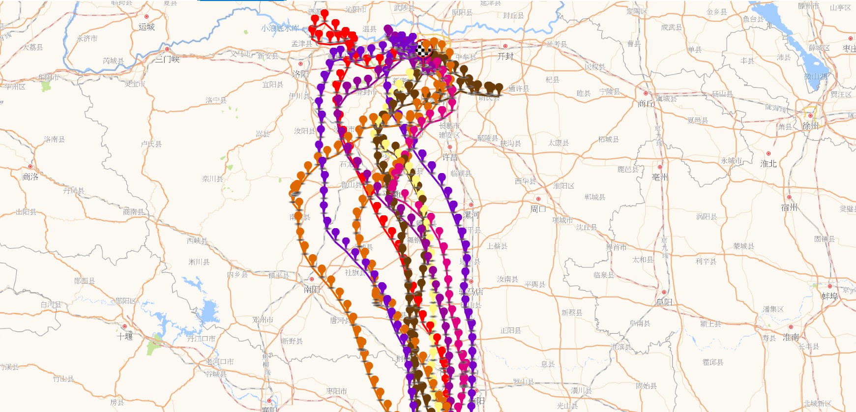 The pigeons were released in Xianning city of Hunan state. And flew back to Zhenzhou. The whole distance is 530Km. The flying direction was from south to north, the wind was from east to west, then changed from south to north, which was not an easy situation in this cold winter.