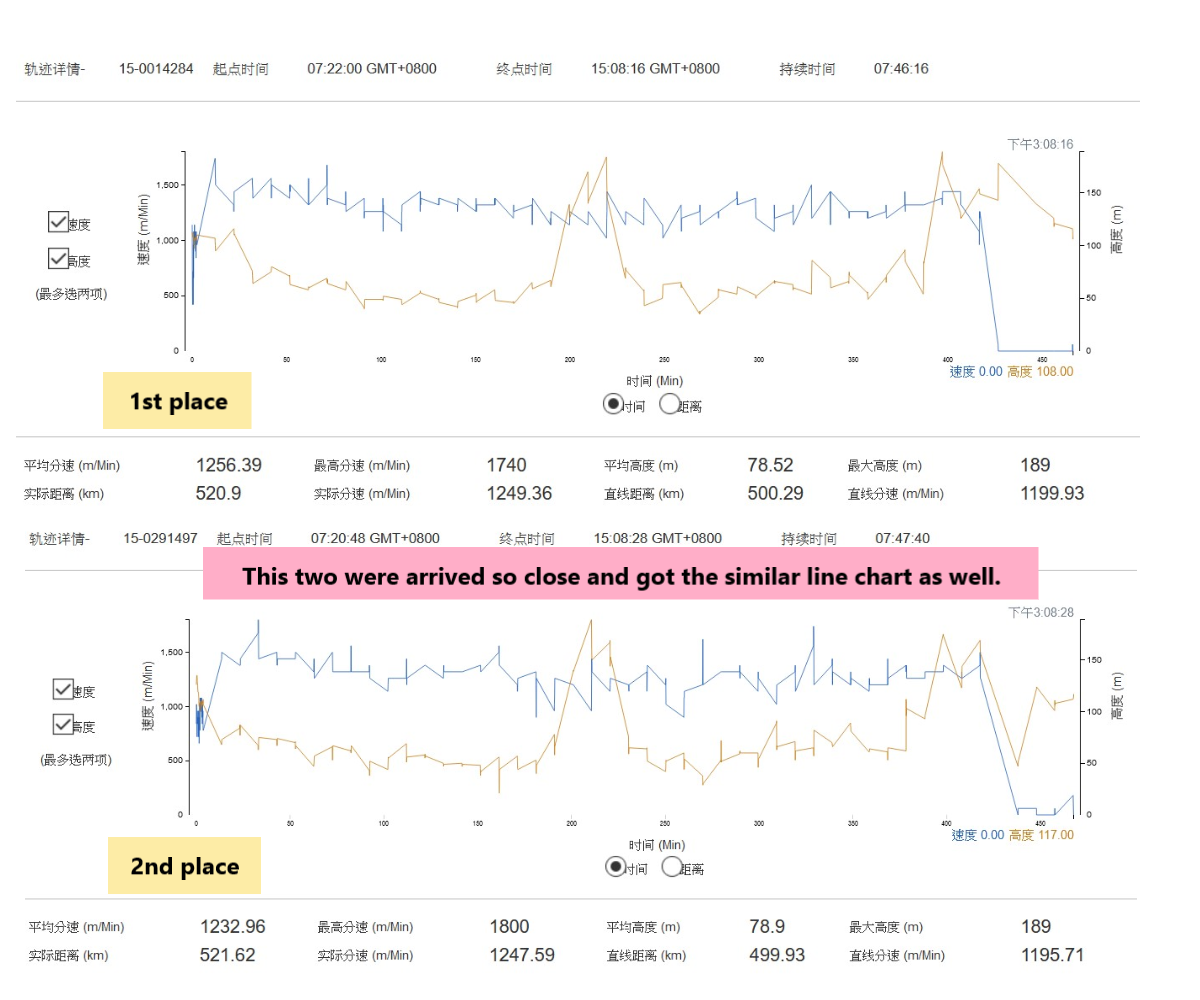 On the other side, most of the interesting thing in this race was the top 10 almost arrived at the same time, even the flight paths were pretty similar as well. People may be making a joke and said how to get the 1st place, it depends on how lucky you are.