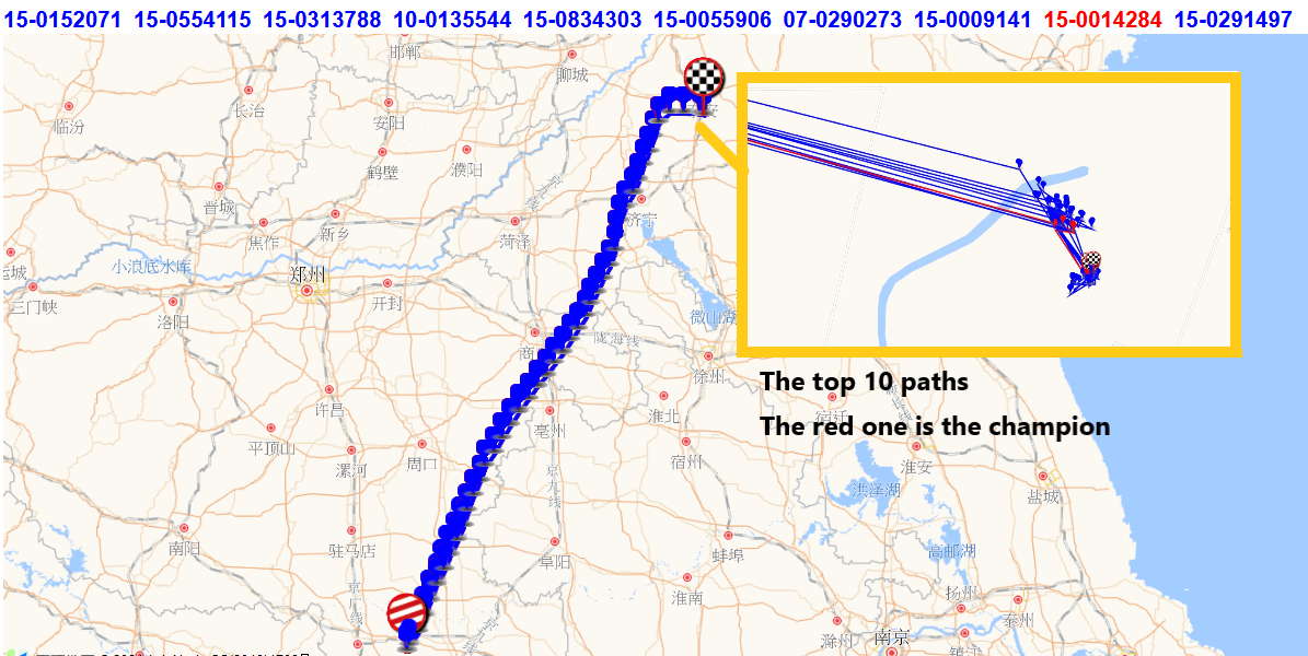 MinLong's pigeons(Red line is the 2nd place E-fei)