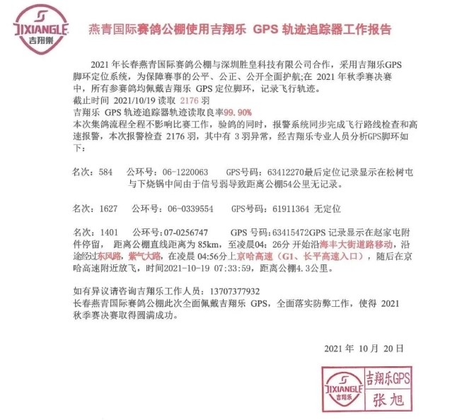 Yanqing International Pigeon Loft used Jixiangle Skyleader GPS rings to prevent cheating this time and made 2021 Autumn Finals end up perfectly.